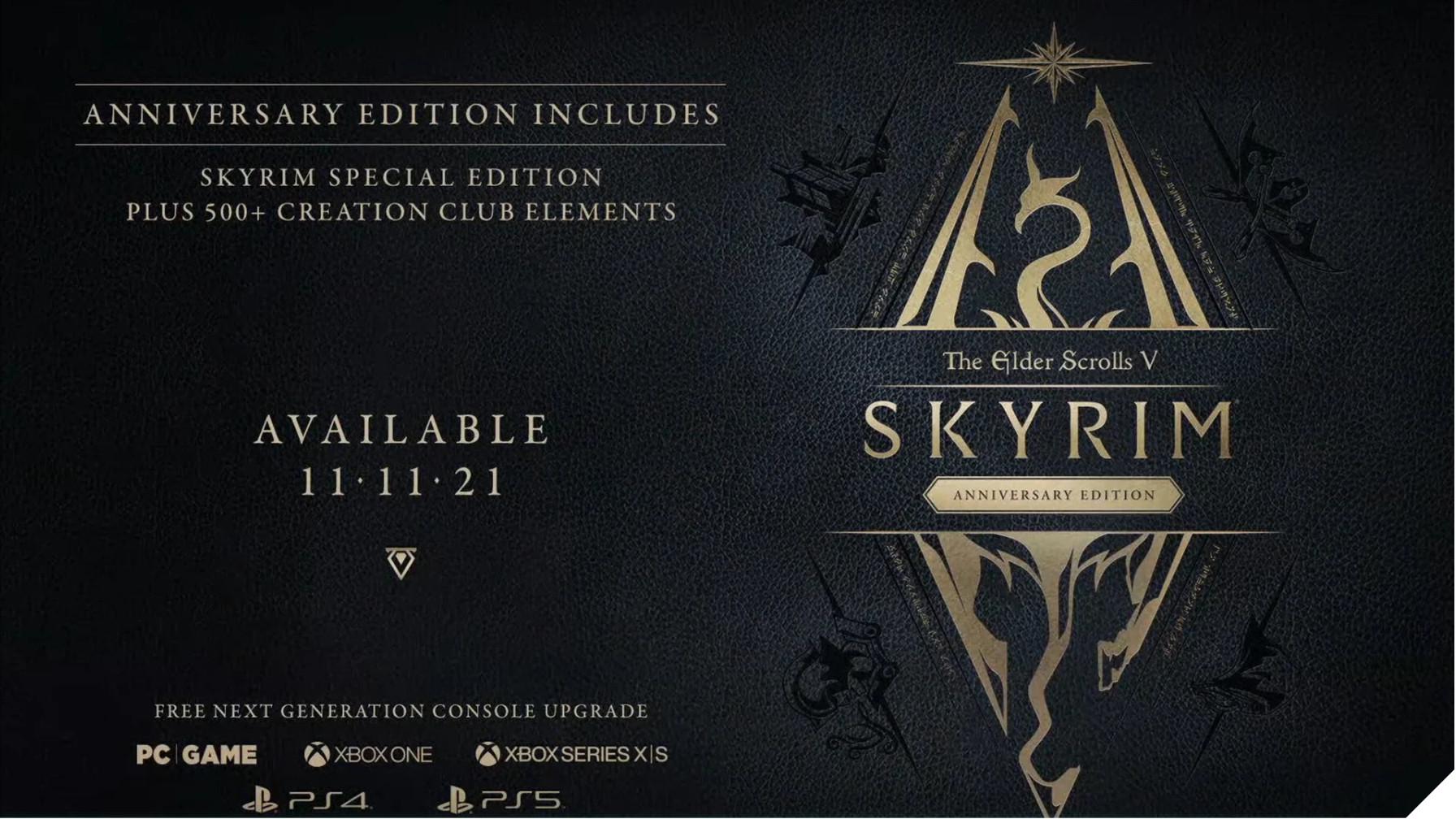 继2013年的传奇版和2016年的特别版之后,B社今日公布了《上古卷轴5》第三个特别版本——“天际周年版(Skyrim Anniversary Edition)”,将于11月11日发售,登陆Xbox Series X/S, Xbox One, PS5, PS4和PC平台。