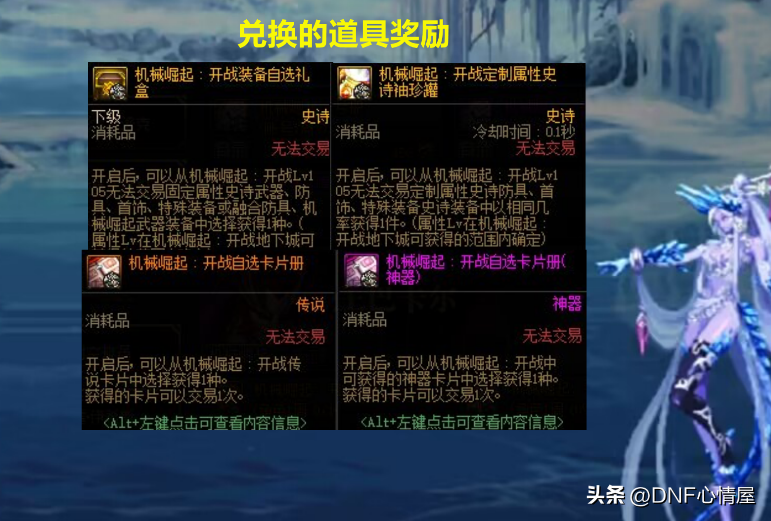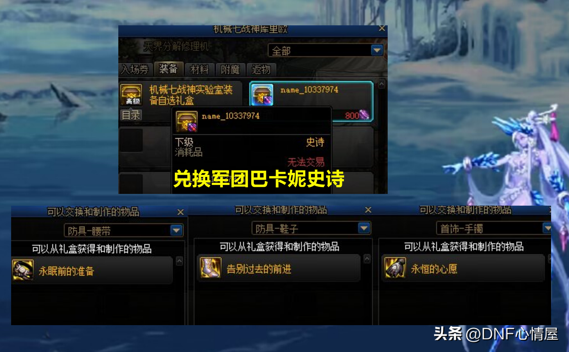 同时在机械七战神实验室,新增了装备自选史诗盒子,800个黑暗之眼储能器可兑换,能获取军团、巴卡妮等固定类型史诗装备,比如石化鞋、破冰腰、睡觉手镯,有些无法换取。