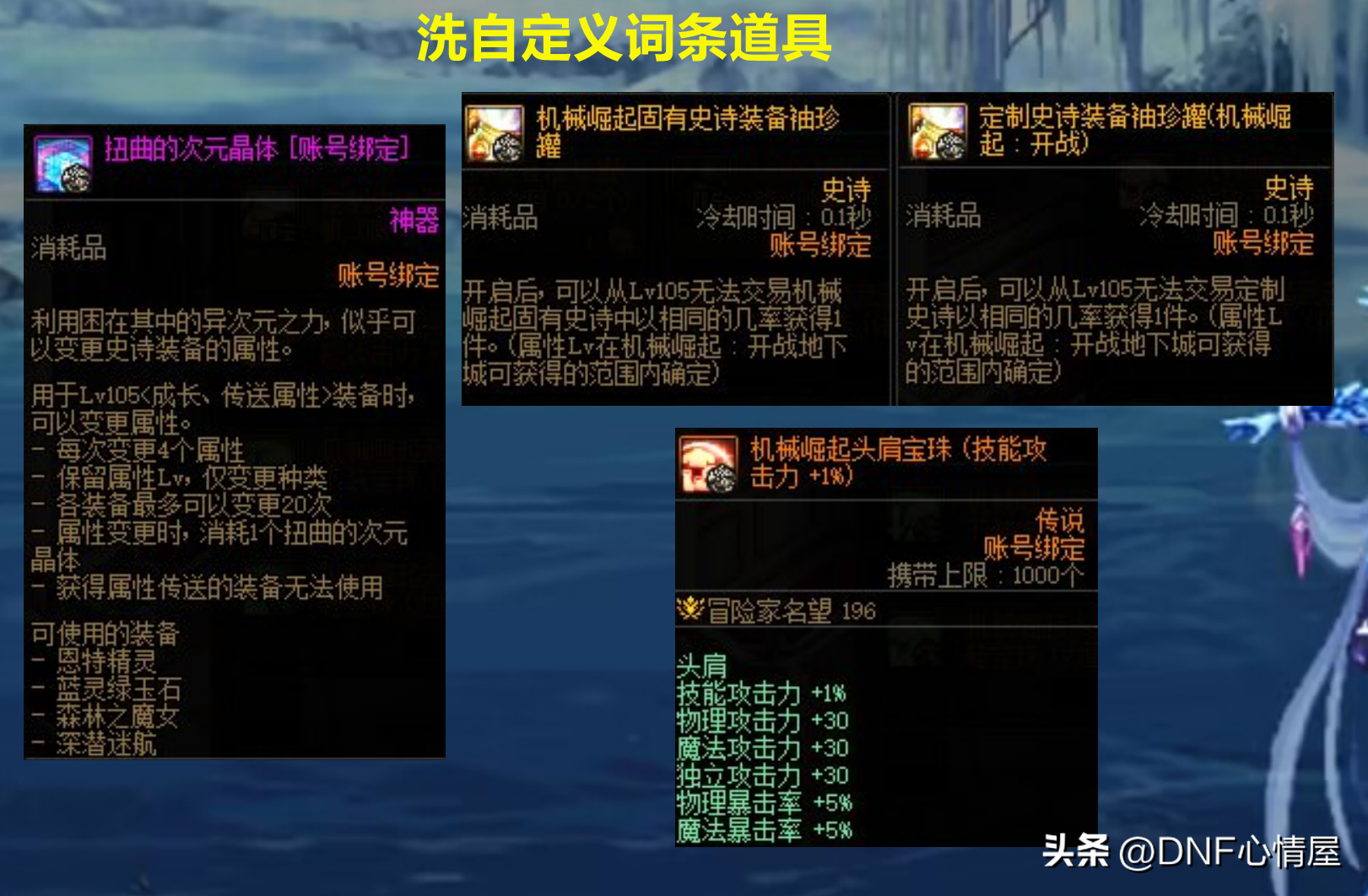 扭曲次元晶体道具,是巴卡妮光迹商店重头戏,1个月仅能限定兑换10个,每次变更4个自定义属性,一件装备最多变更20次。有了这个东西,离完美自定义词条吗,又再一次进了一步,出血30上衣更获取更加简单。