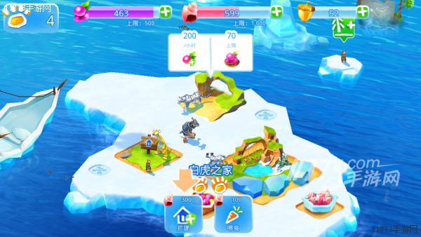 游戏以冒险为主题,所以这次就不是单纯的经营了,希德与朋友们因为捉迷藏的游戏而失散,因此它要乘坐冰雪帆船去一个一个寻找它们。游戏任务很多样,主要分成经营和探索两大部分,经营当然就是建造家园来收留更多动物,而探索则包括了各式各样的寻物、解谜以及简单的小游戏。比如在跑酷中拯救动物,以及消除方块来拯救动物等等,可以看作是一个大杂烩类的休闲游戏。