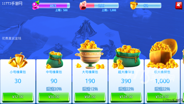 虽然游戏本身为免费,但游戏还是非常希望玩家们花钱买内购的。游戏中大量的地方需要松果,松果可以直接跳过建造建筑的等待时间以及解锁部分游戏内容。而本身就来之不易的松果是根本满足不了这些需求的。并且随着游戏的推进,越到后期松果的需求量越大,玩家们也就自然投入会越大。