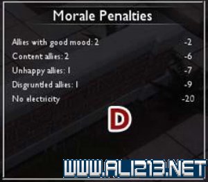 损坏情况——如果有损坏的设施,就会对士气造成不良影响,长期不理的话还会导致游戏结束。