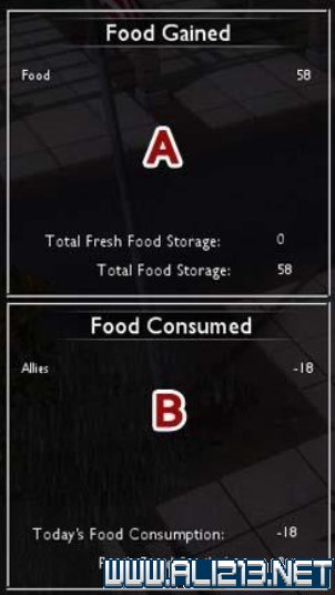 获得士气——这一栏可能是你本日搜寻所得到的各种食物、饮品和奢侈品所带来的士气影响,这是每日士气最基础的获得来源。
