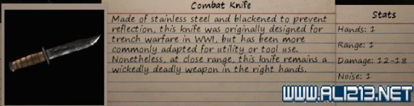 小刀的主要作用是用来赋予“流血”状态,但只对人类有效,对丧尸无效,它们的致命一击几率也很低,不适合中后期使用。