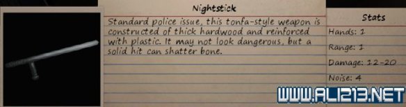 棍棒——棍棒有单手也有双手类型,重量居中,AP消耗一般,造成致命一击的几率一般。