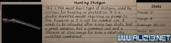 散弹枪都是双手武器,只有一种双筒例外(不幸的是,下城区一个敌对幸存者用的就是这种,几乎秒杀任何玩家人物)。