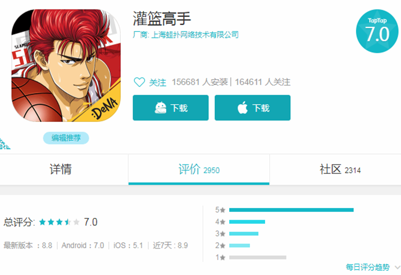 《灌篮高手》起初的评分和口碑也并不高,原因之一就是他们厂商早前留下了太差的印象。不过这款游戏后来靠着出色的手感以及不错的运营,外加同行的衬托,反而在taptap上,将5点几的评分,慢慢提升到7.0,这类逆转很少见。