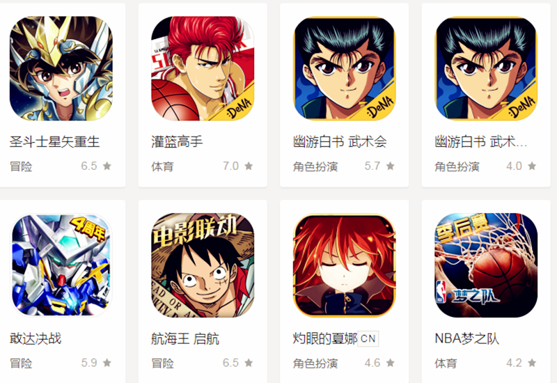 这里要说一下这款游戏的厂商——上海蛙扑。老熟人啊,有诸多令人耳熟能详的热门动漫IP,都握在他们家手上。包括海贼王、死神、幽游白书、圣斗士星矢、灼眼的夏娜、银魂等等。