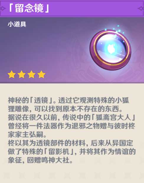 需要完成稻妻系列任务《绀田话事》取得小道具「留念镜」