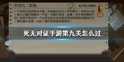 很多小伙伴们都在求死无对证手游第九关过关的方法,看来都是被难住了,所以小编就为大家带来了死无对证手游第九关的通关方法,感兴趣的就一起往下看吧。