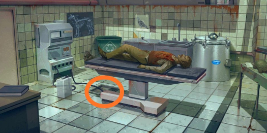 6、拿起尸体与背包内洞穴服装组合,归位甲醛,针筒,标本制作书(如果拿了的话)。