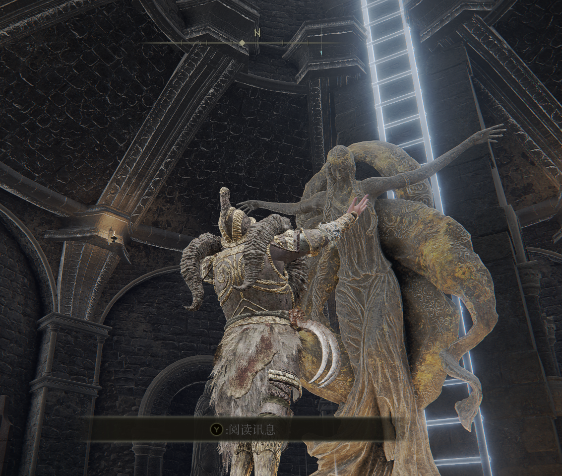 1、在1层的女神像前使用肢体动作深具睿智解锁上楼的楼梯