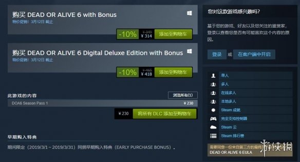 今天4点pc版本的死或生6在steam商店正式解锁,相信想要入手pc版的玩家已经开始行动了吧,那么小编在这里为大家带来这篇死或生6pc定价一览感兴趣的朋友快来看看吧。