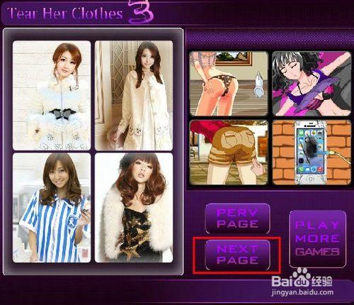 进入美女角色选择页面,可以点击【NEXT PAGE】(下一页)查看每个美女的图片,也可以点击【PERV PAGE】(前一页),每页4个美女,前后共12个美女的图片。点击选择你要恶搞的美女即可。
