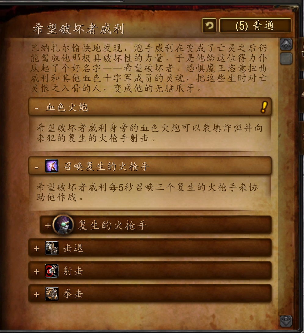 巴纳扎尔愉快地发现,炮手威利在变成了亡灵之后仍能驾驭他那极具破坏性的力量,于是他给这位得力仆从起了个好名字——希望破坏者。恐惧魔王恣意扭曲威利和其他血色十字军成员的灵魂,把这些生时对亡灵恨之入骨的人,变成他的无脑爪牙。