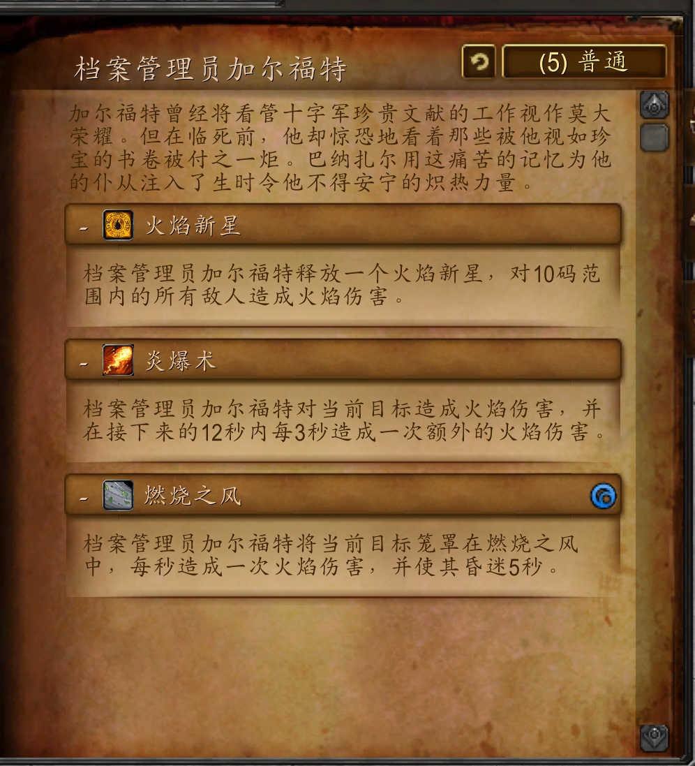 加尔福特曾经将看管十字军珍贵文献的工作视作莫大荣耀。但在临死前,他却惊恐地看着那些被他视如珍宝的书卷被付之一炬。巴纳扎尔用这痛苦的记忆为他的仆从注入了生时令他不得安宁的炽热力量。