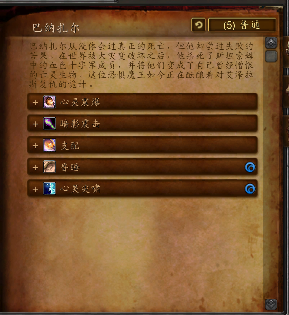 巴纳扎尔从没体会过真正的死亡,但他却尝过失败的苦果。在世界被大灾变破坏之后,他杀死了斯坦索姆中的血色十字军成员,并将他们变成了自己曾经憎恨的亡灵生物。这位恐惧魔王如今正在酝酿着对艾泽拉斯复仇的诡计。
