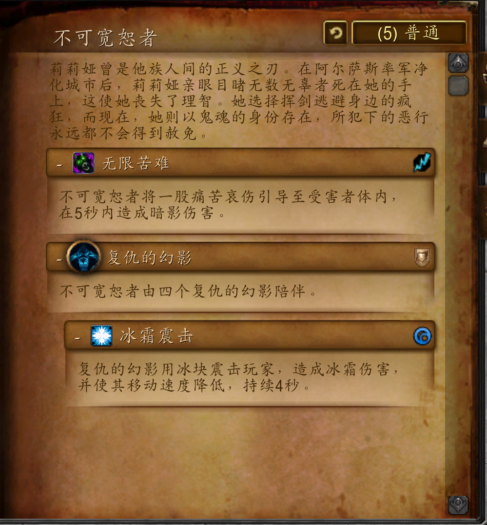 黑暗魔法师,克尔苏加德创立的诅咒神教的一员,一直在传播诅咒神教的教义,现在负责守卫斯坦索姆的通灵塔。