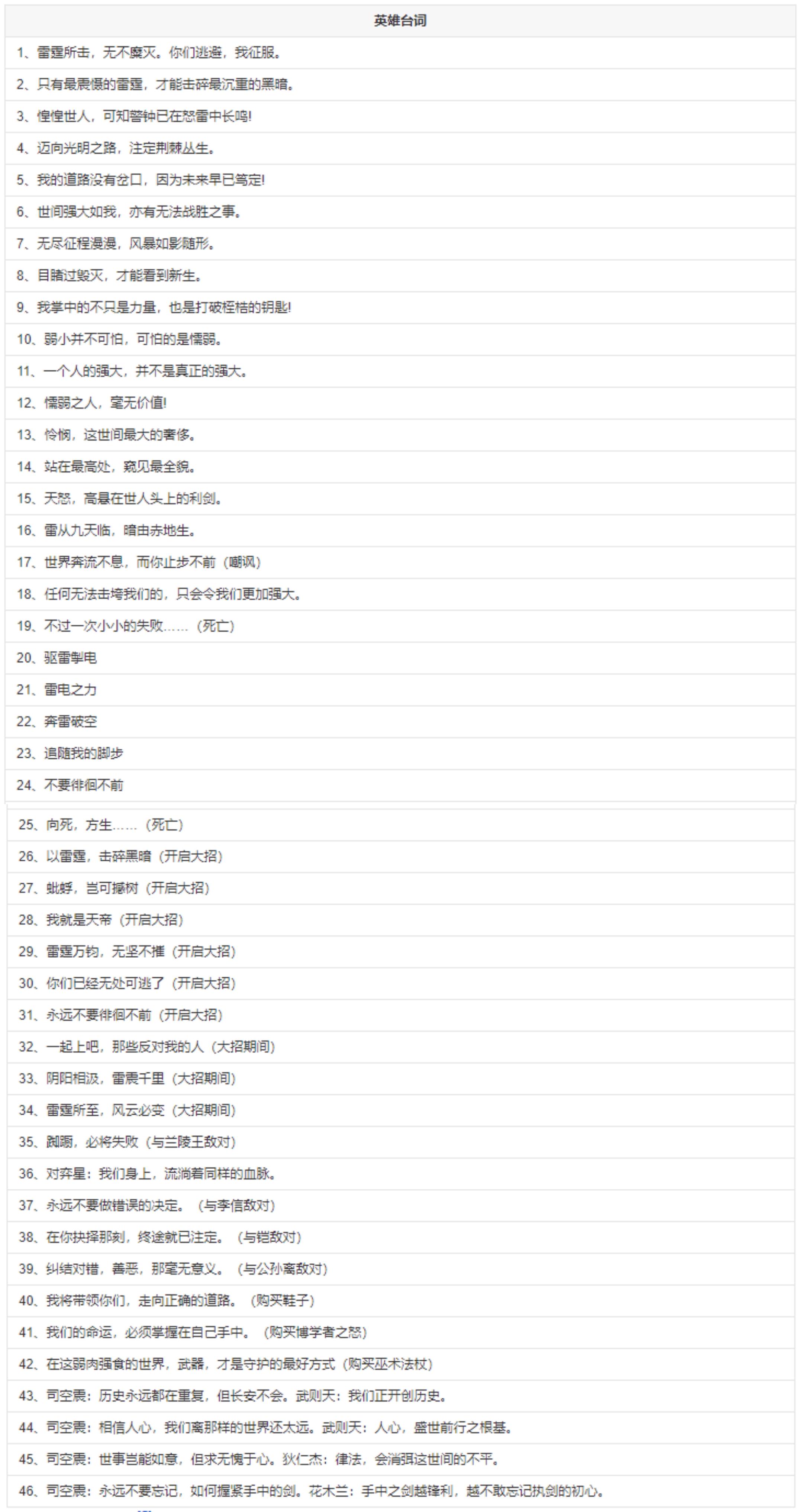 王者荣耀s28司空震的全部语录一共46条,其中包含了死亡时的语录,语录有:天怒,高悬在世人头上的利剑。雷从九天岭,暗由赤地生。弱小并不可怕,可怕的是懦弱等,具体可见下图全部语录。