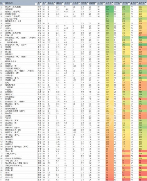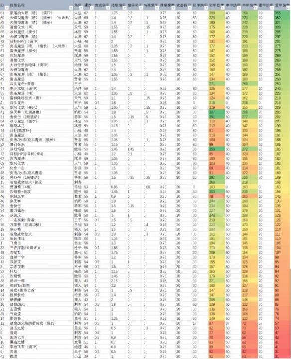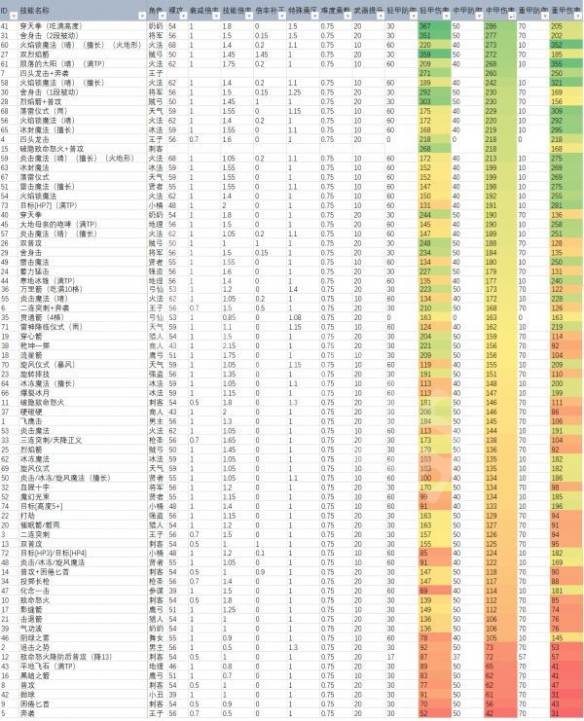 部分技能因为不常用或者属于AOE技能所以没有入表,一般单点伤害的对比会比AOE更有价值。