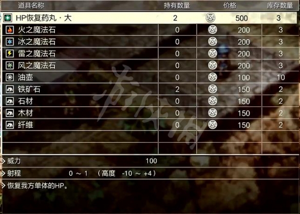 游商会出售一些比较稀缺的魔法石,恢复大量的药物,还有一些特殊的材料,比如铁矿石、纤维什么的,建议能买的话就全买了,因为没库存的话,以后就难找了。