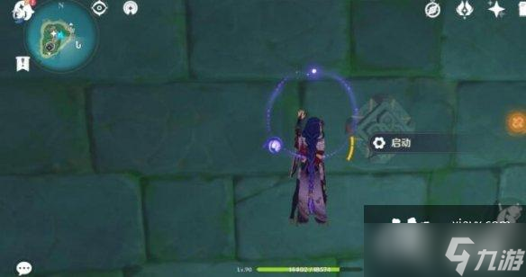5.这是关键的一步,抬头望一望,你会发现顶上有一个缺口,从缺口处爬上去,启动面前的机关,水位再次下降,最后秘境就完全浮出水面,就完成解锁了。