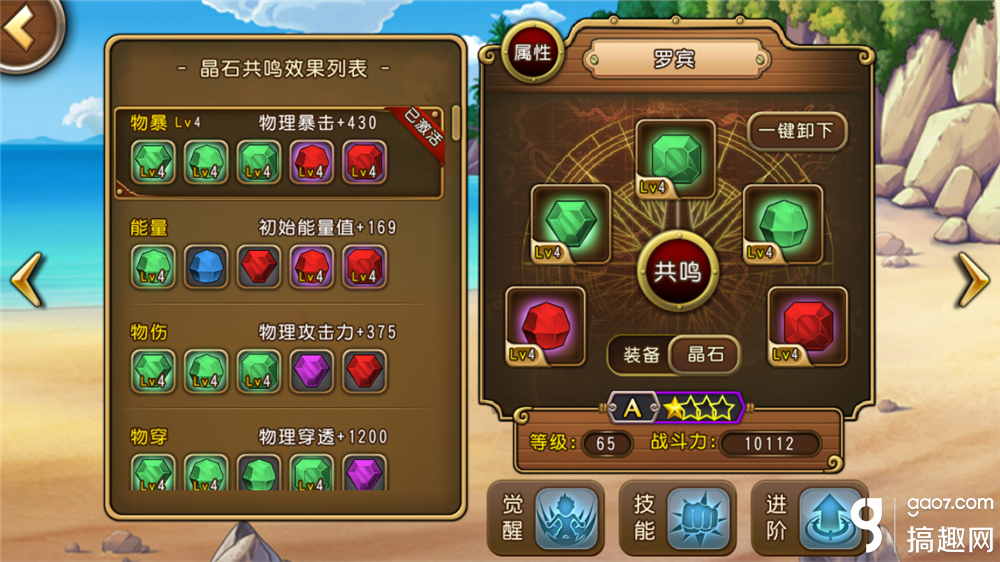 另外提高能量和能量回复率来增加技能释放频率的思路在试炼中也可以实现,将辅助中的气魄与斗志点满,防御中闪避后恢复能量的生机也要点满,保证罗宾抢先释放大招。与晶石共鸣配合起来,加上秒掉敌人能够增加能量值,在实战中一战甩出5个大招也不是不可能的事情。