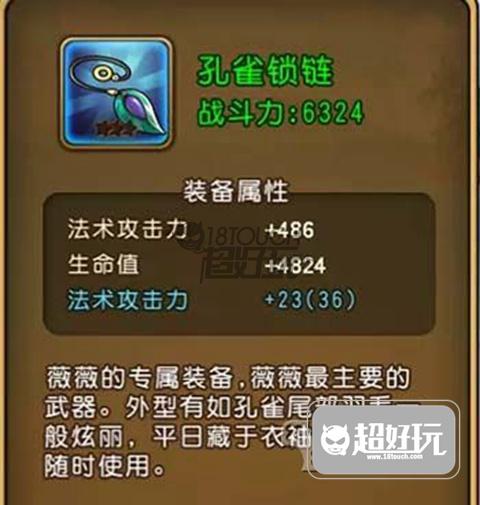 孔雀锁链,薇薇的专属装备,薇薇最主要的武器。外型有如孔雀尾部羽毛一般炫丽,平日藏于衣袖内,方便随时使用。