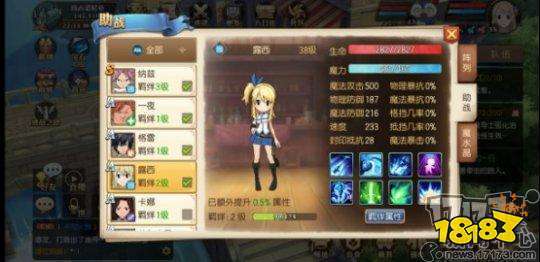 说完职业后,就要选择助战搭配问题,在妖精的尾巴中,我们可以不断的招募助战伙伴加入自己的阵容中。每次战斗只能上阵4名助战角色,通过启用不同的阵列获得不同的属性加成。