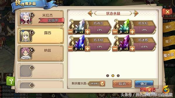 一个合格的伙伴除了天赋的洗练外,还要进行魔水晶的修炼,而露西作为一个魔法输出型伙伴,就可以主要修炼状态水晶来提高抗控制能力。