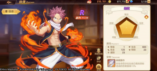 首先是我们阵容中的主要输出角色纳兹,纳兹在原著中最为民工漫的主角,一向是带有很多高杀伤性的技能的,在妖精的尾巴无尽冒险的游戏中也不会例外。