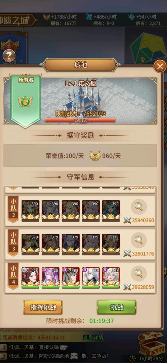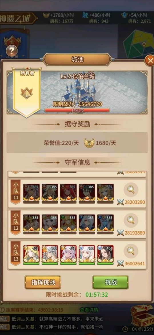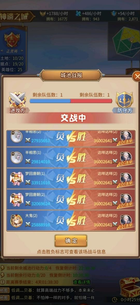 从下图可以看到,我方阵营顶端战力是个高v光法,第二方是人马,第三方是暗法,在这模式光法谁都打不过,导致攻城出现”1人守1城”的壮观景象。
