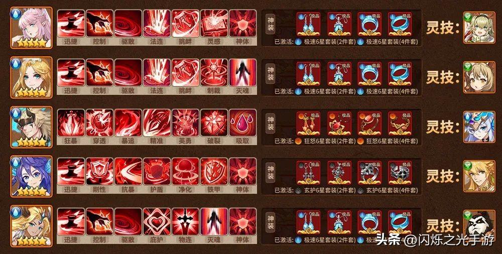 这套阵容在精灵搭配方面,可以采用风龙、蔷薇公主、海灵儿、神使的组合。强化队伍整体速度和续航能力。
