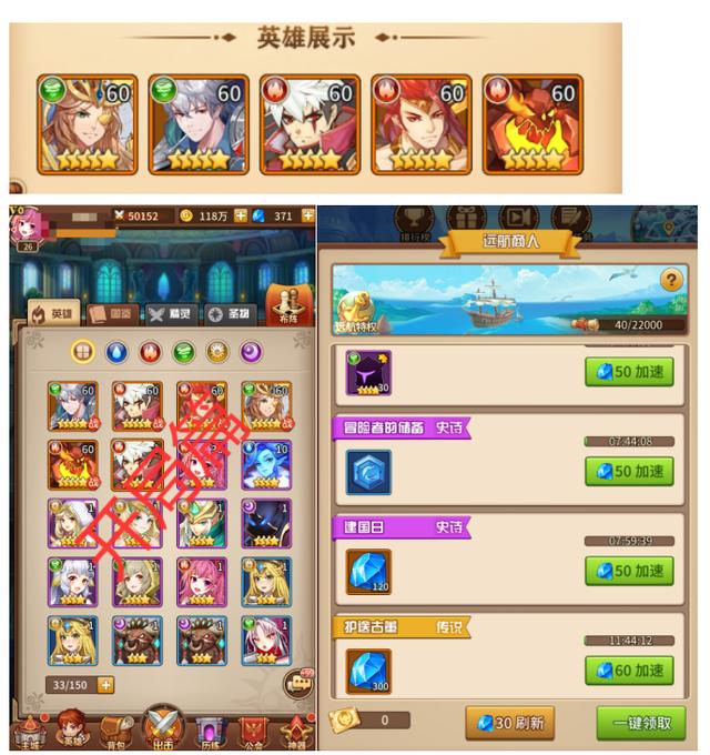 游戏对象:VIP0(白嫖族) 1.新建账号角色后跟随剧情,角色的名字有一次免费的更改机会,领取各种奖励,礼包领取四星英雄亡灵先培养到60级,可重点培养到九星(在推图50关可以领取1个四星亡灵,7日目标福利里可以300钻购买1个亡灵,再加上其它风系四星英雄5个可以合成1个五星亡灵),加入公会后打BOSS效果很好,然后一直推图。