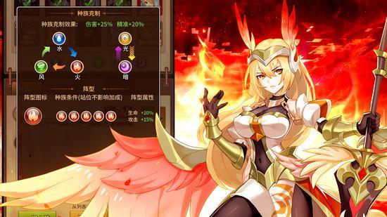 火系辅助不强,总体来说后排太脆,一般会搭配其他系英雄出现。种族克制和阵型属性加成具体情况如下: