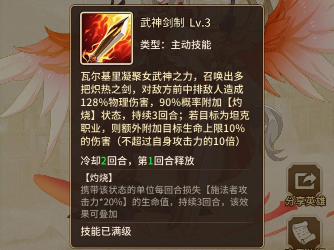 1、一技“武神剑制”打坦克有附加生命上限10%的伤害,且冷却时间为两回合,在当前坦克崛起的版本里,不失“一姐”的排面。