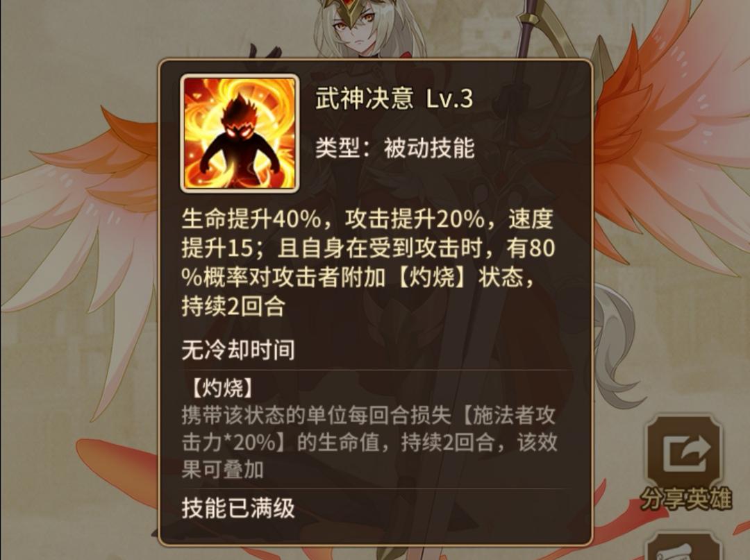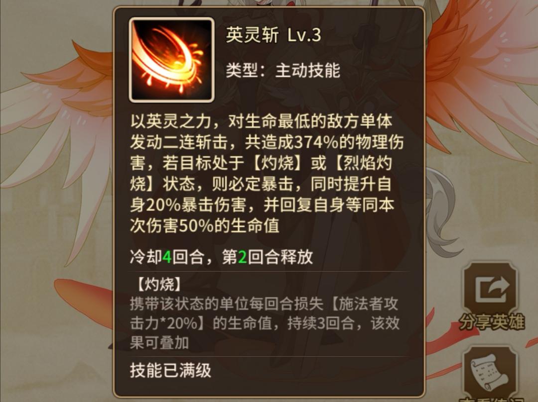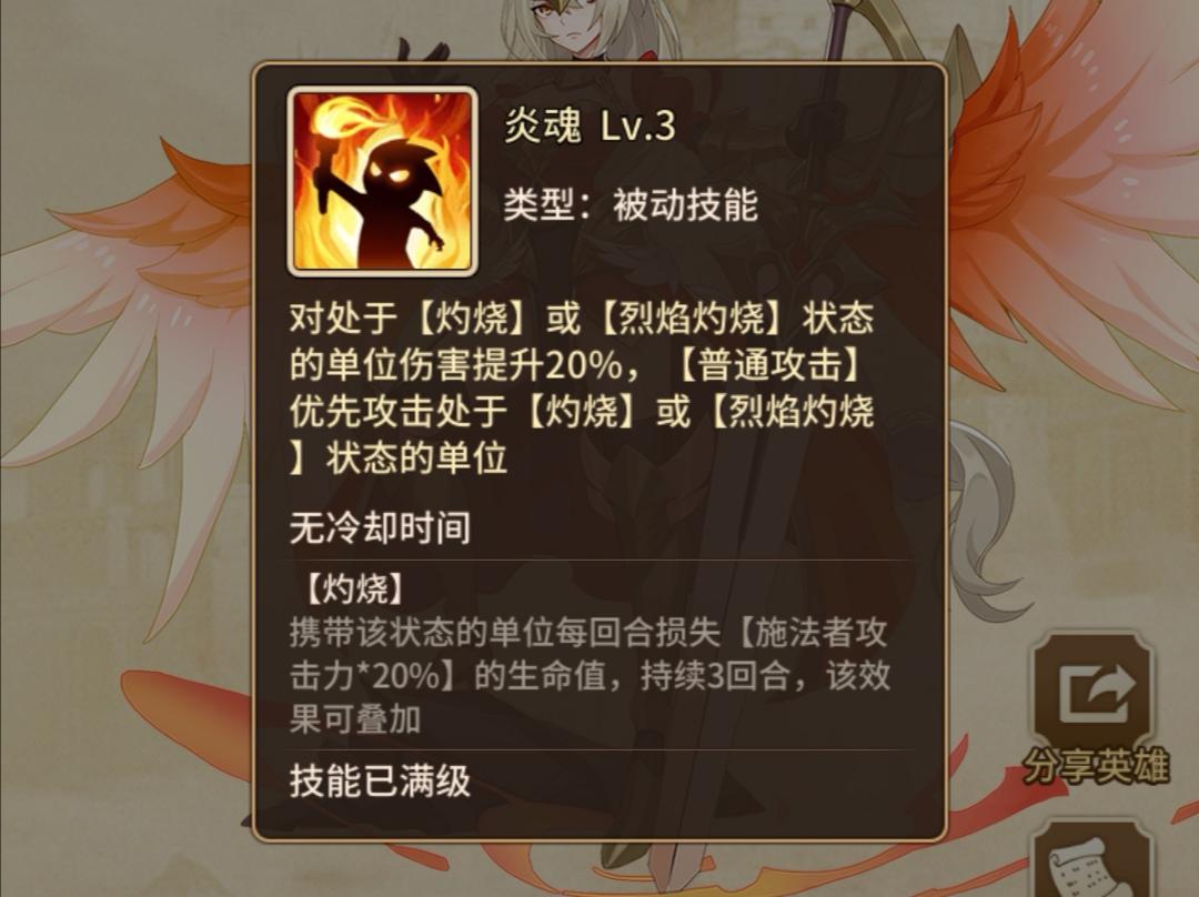 2、狂暴:虽然3技能在对方有灼烧或烈焰燃烧的状态下必定暴击,但极不稳定,而且一技能出现暴击,伤害也是很乐观的。
