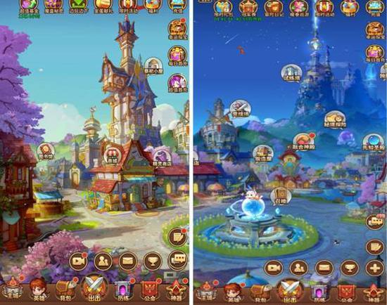 《闪烁之光》采用了2D+3D的多图层表现形式,主城为欧式村落,在细节中隐藏“心机”,比如环境构筑的动态阳光、水波、花草、落叶等,红龙、白鸽、猫咪、精灵等元素的添加增强了互动感,大场景也会随白天黑夜呈现不同变换。另外,值得一说的就是游戏战斗场景的绘制,虽然是2D,但是暖色调设计十分精美,场景变化也非常丰富,玩家能切身感受到不同的冒险风格。