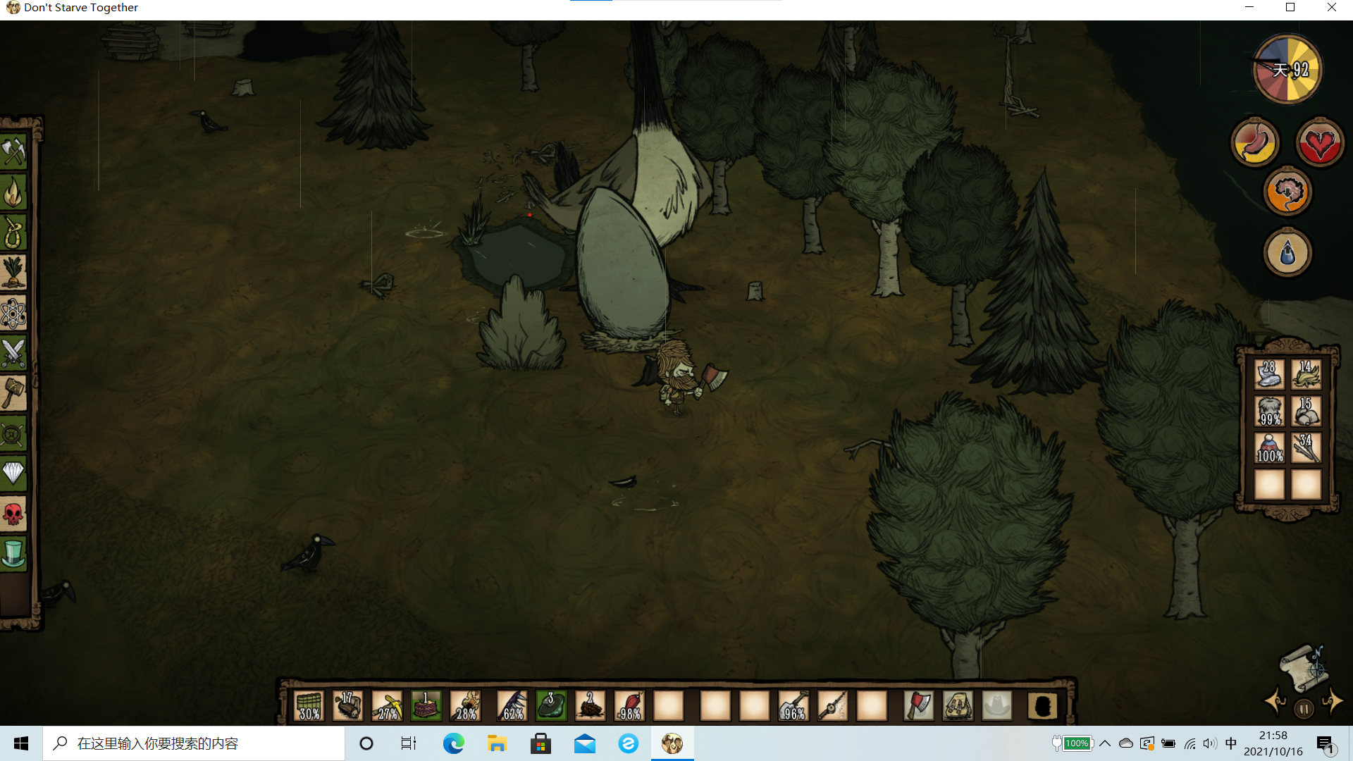 值得一提的是,这个春季BOSS驼鹿,在距离它最近的雷雨天会被雷劈中,并生成巨蛋,虽然很TM炫酷,然而用锤子敲会伤血,并且没有任何有价值的掉落物,不建议直接敲,打完BOSS再酌情烤虑