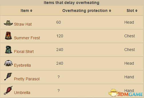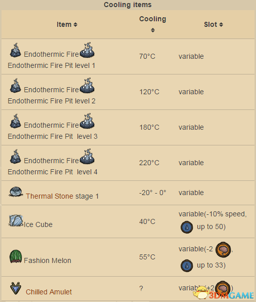 此类物品仅能【延缓温度的继续升高】,而不能【主动】降低角色的温度。