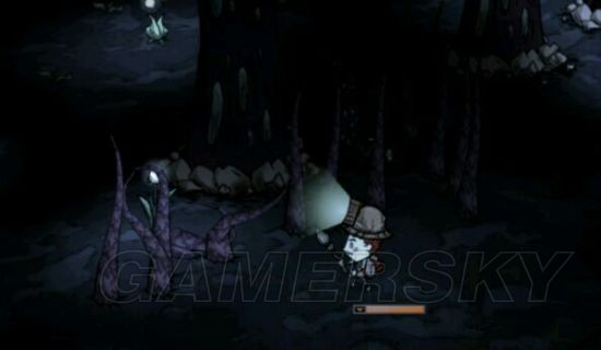 血量500,无攻击性。当受到伤害,会召唤出无数根小触手,击杀随机掉落荧光果,狼牙棒,触手皮,地皮等物品。