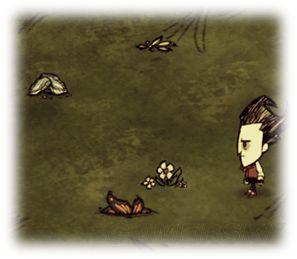 黄昏前我干掉了发条骑士,没有木甲我更加轻灵也更加谨慎,我提前为回血准备的蝴蝶没有用武之地(发条骑士走位类似猪人,两次进攻后会停下来休息),可惜的是我已经没有草了,不得不造了一个石头火坑来度过夜晚。
