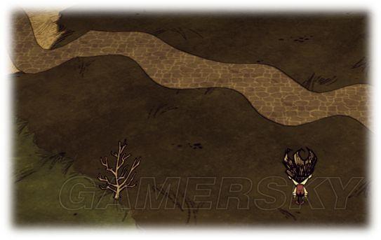 随手捡取燧石、种子和手撕蝴蝶,是良好的习惯,资源很少,我随手采摘了2树枝后,往一个方向走去,因为是中等大小的地图,我很快发现了卵石路主干道。