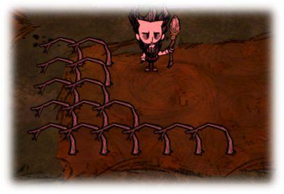 (树枝少的可怜,我不得不通过铲掉刚种的树苗来获得树枝)