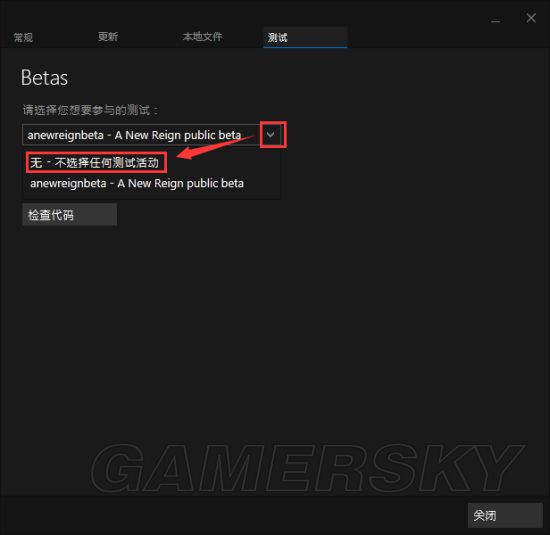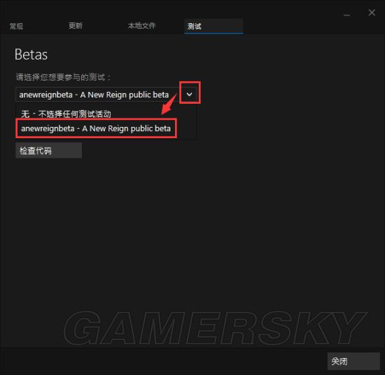 2.点测试选项,点击右边的箭头,选择“anewreignbeta...”