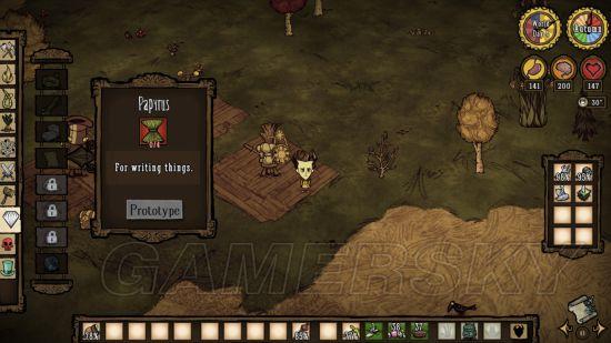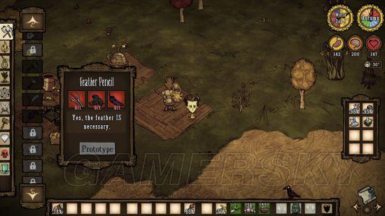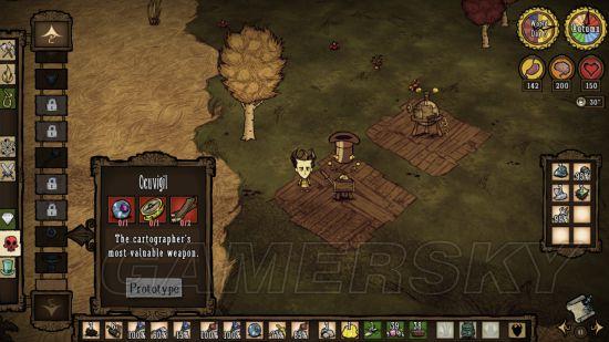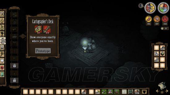 要想做地图卷轴,首先需要在科技一本做一个羽毛炭笔和一张草莎纸,然后靠近制图者桌就可以制作了,注意,这个不是一种科技,所以制作不会增加精神,类似远古科技,只能靠近制图者桌制作