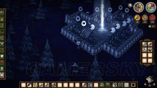 建议多找几个人一起防守,一个人是绝对做不到的,除非像我一样,如果月石底盘被打碎,那么你就要重来了,未杀死的猎犬和疯猪在这个时候会石化