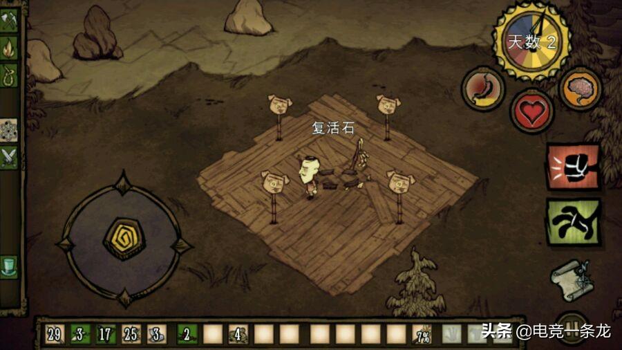 自带lucy斧头,无限耐久砍树更快不解释,砍树、挖草、摘浆果树枝会增加木头值,木头值到两百时会在满月变身海狸,海狸攻击力基本相当于狼牙棒,变身时会掉落一切物品,所以小心蠢猪吃东西!变身时的海狸可以做除了干草插意外所有工具能做的事情,挺强的。