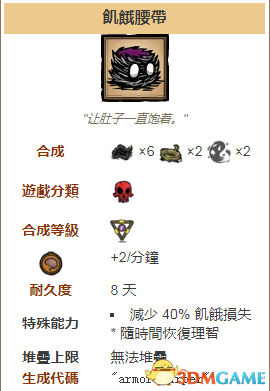 由于缺点明显,我们可以很好的针对大力士的弱点,比如饥饿腰带就是非常好的装备,可以说是最合适的。
