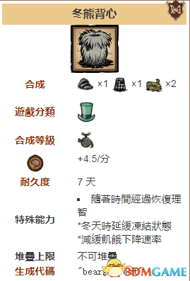 如果玩的是巨人统治的DLC,那么冬熊背心也是极其适合的装备。